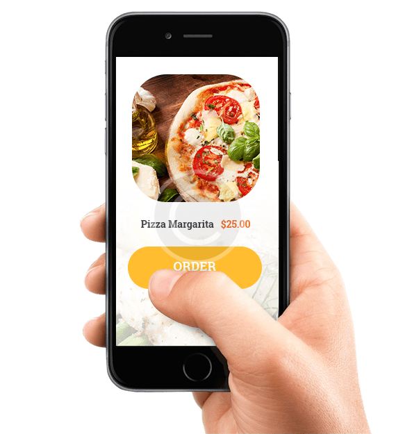 Mobile App allows you to choose restaurant, view price and check order.
